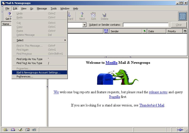 Under the "Edit" menu, select the "Mail & Newsgroups Account Settings..."