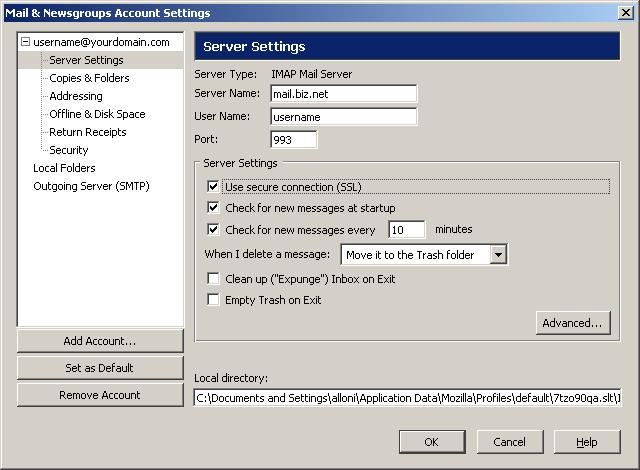 - Change the "Server Name:" to "mail.biz.net" if it is anything else. Make